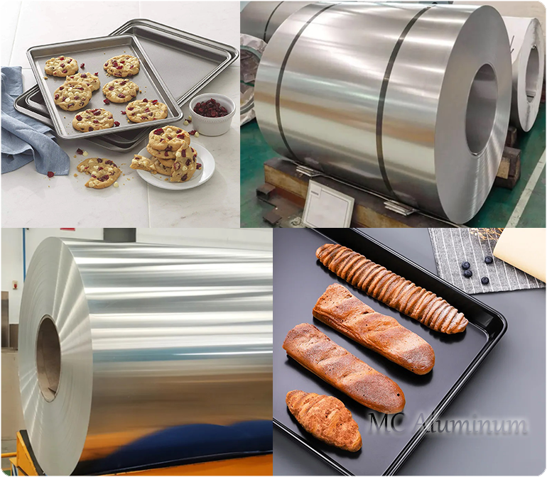 As a food cooking tool, the cake tray has high requirements for the product. It needs multiple requirements such as less pinholes on the surface of the aluminum coil, good flat plate shape, post-stamping processing, and good processing performance. 3004 aluminum alloy has low density, light material, good processability, strong and not easy to deform. The aluminum alloy tray has good thermal conductivity, which can make the cakes heated evenly and meet the requirements of use.